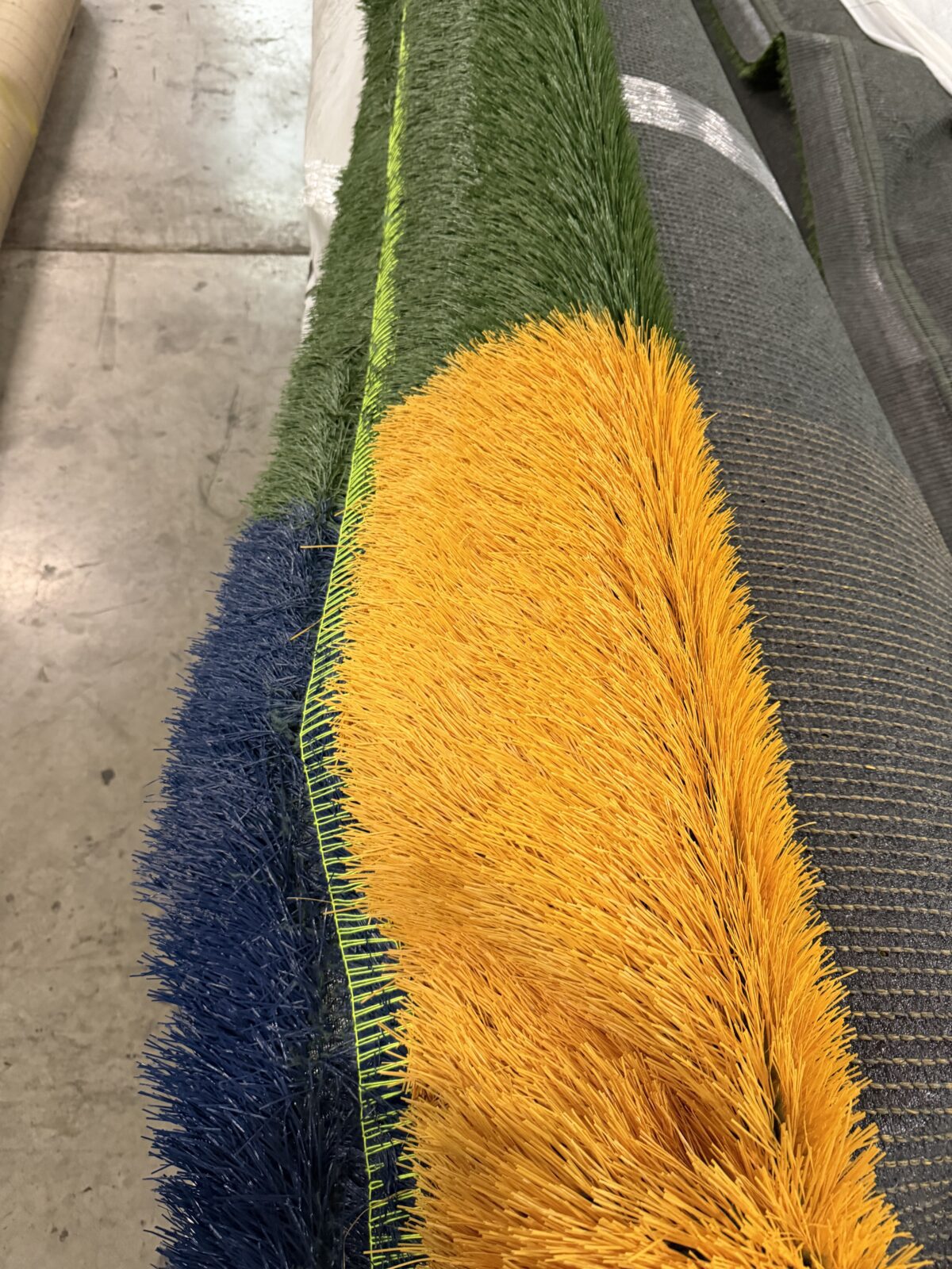 Notes – 30 inches bad of yellow / blue on end – 4 inches of yellow on the other side – 149 inches wide of green